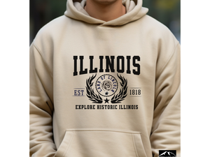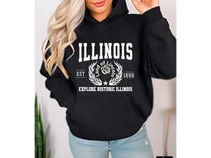 Celebrate the heart of the Midwest in timeless comfort with our Illinois State Legacy Unisex Hoodie. Featuring the proud slogan "Explore Historic Illinois", this hoodie is a tribute to the state’s deep roots—from Lincoln’s legacy and Route 66 to the vibrant culture of Chicago and charming small towns across the prairie.