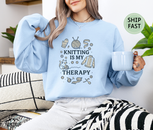 Knitting Is My Therapy Sweatshirt – Cozy Yarn Lover Gift Sweater