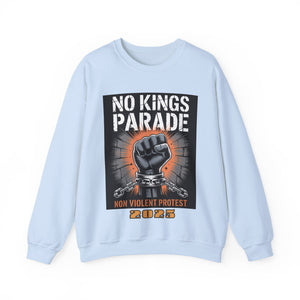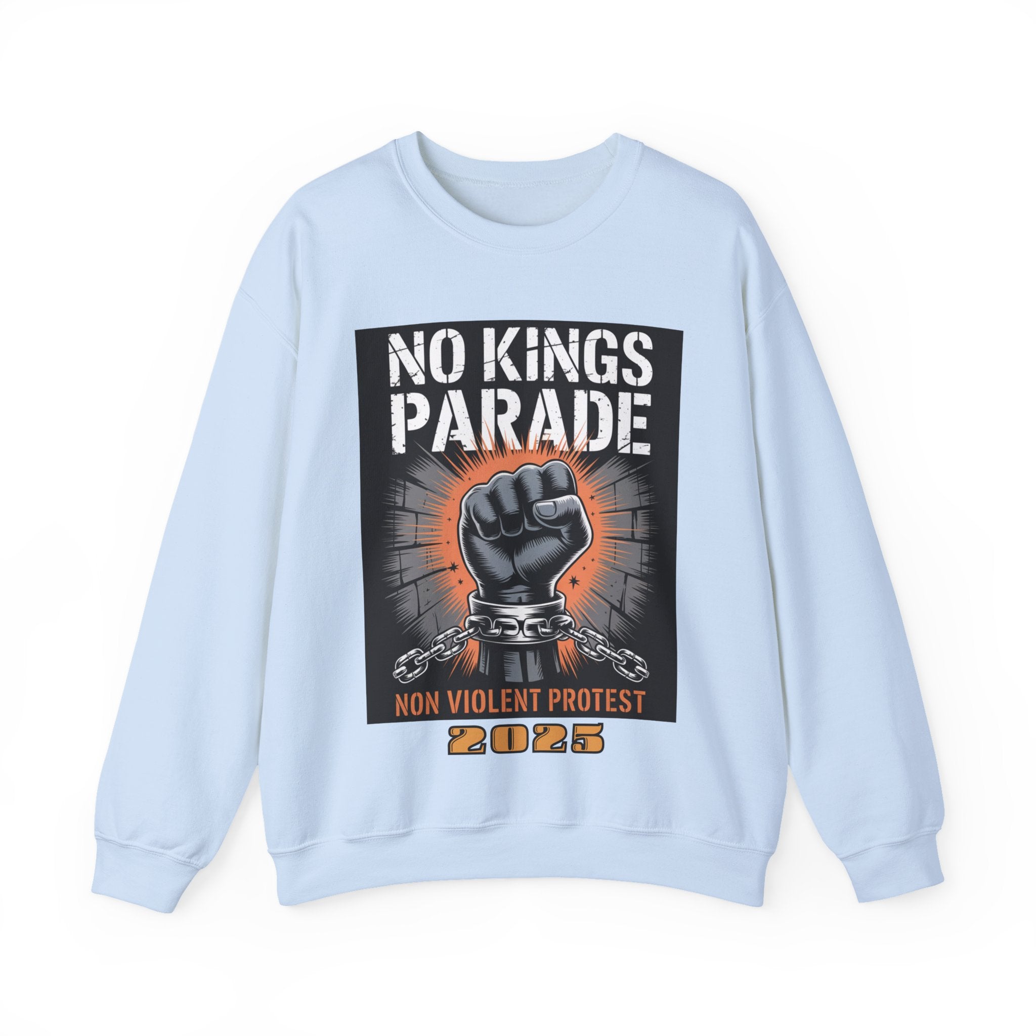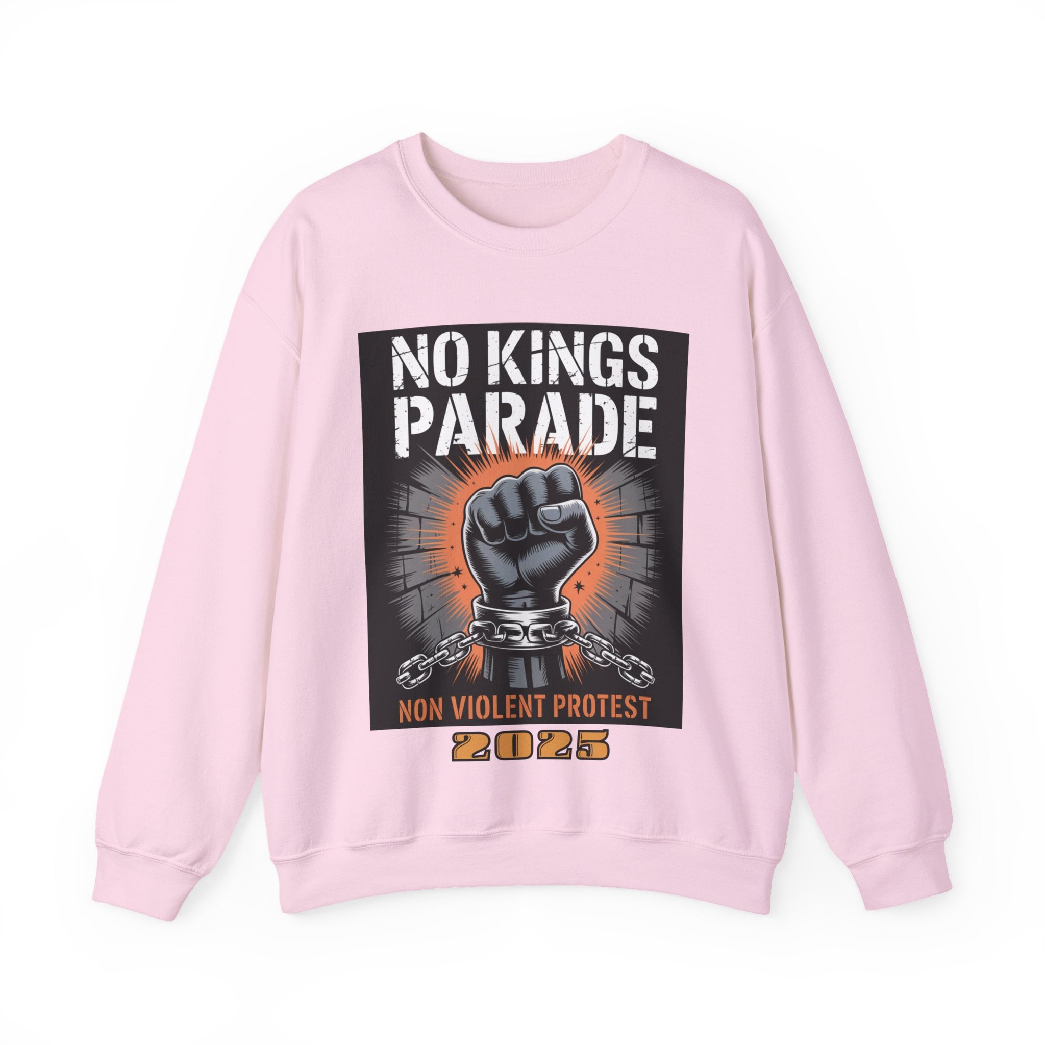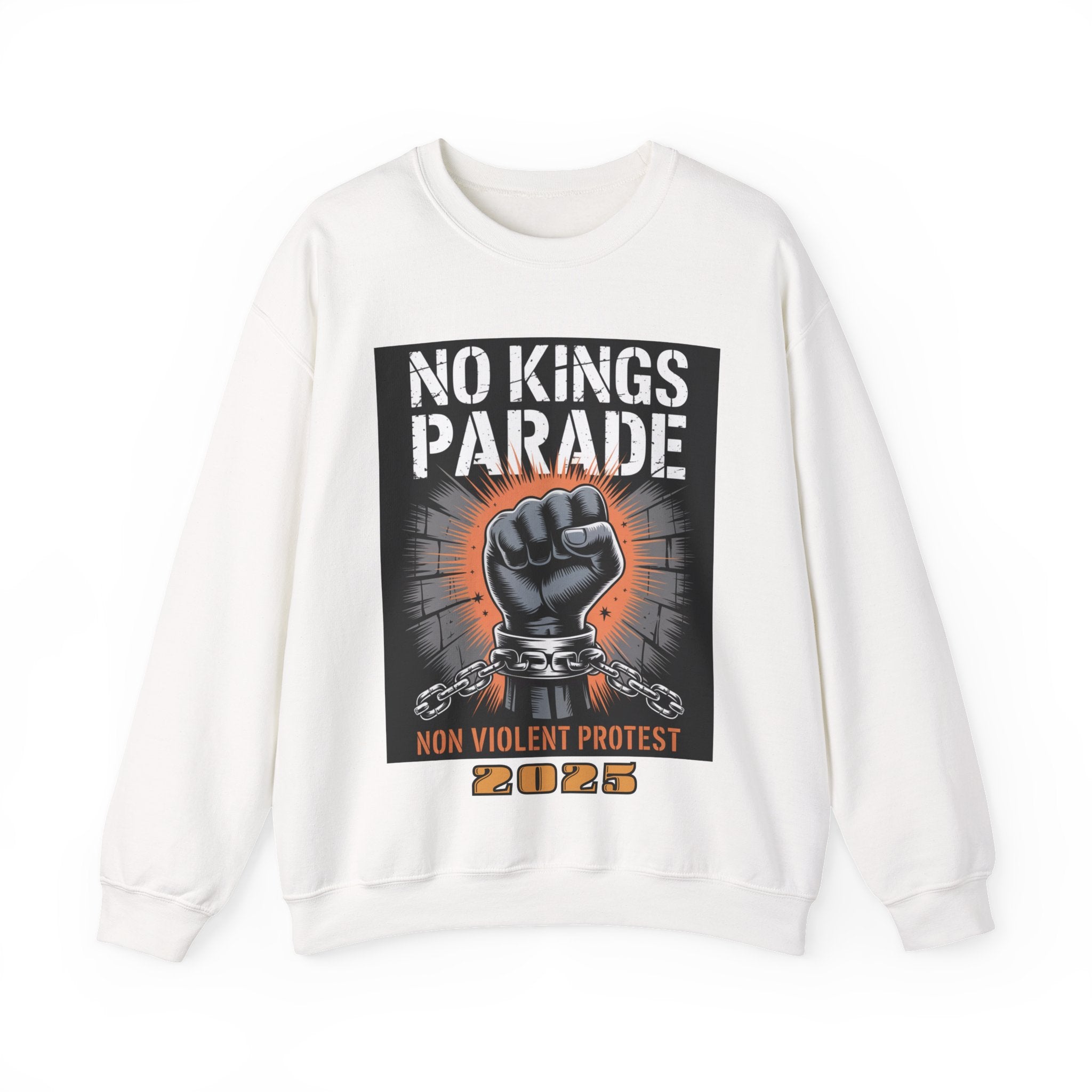 Make a bold, peaceful statement. This unisex sweatshirt features a powerful chained fist image and the message: “No Kings Parade. Non Violent Protest.” Symbolizing unity, resistance, and nonviolence, it’s perfect for protests, awareness events, or everyday wear that speaks volumes.
