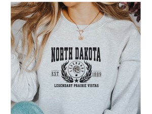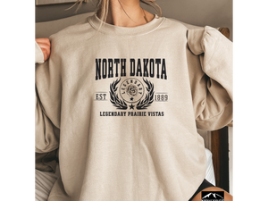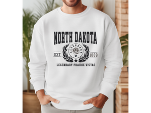 Celebrate the wide-open skies, golden fields, and timeless spirit of the Great Plains with this State Legacy Unisex Sweatshirt. Featuring the slogan “Legendary Prairie Vistas,” this design pays homage to North Dakota’s vast landscapes, rugged beauty, and resilient communities.