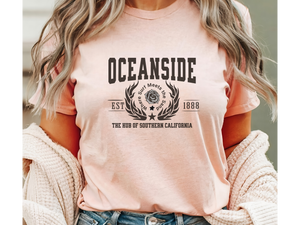 Known for its sun-drenched beaches, laid-back lifestyle, and perfect mix of surf and city, Oceanside is a true SoCal gem. Whether you're a local, a military hero stationed nearby, or someone who just loves the ocean breeze and Southern California energy—this tee is for you.