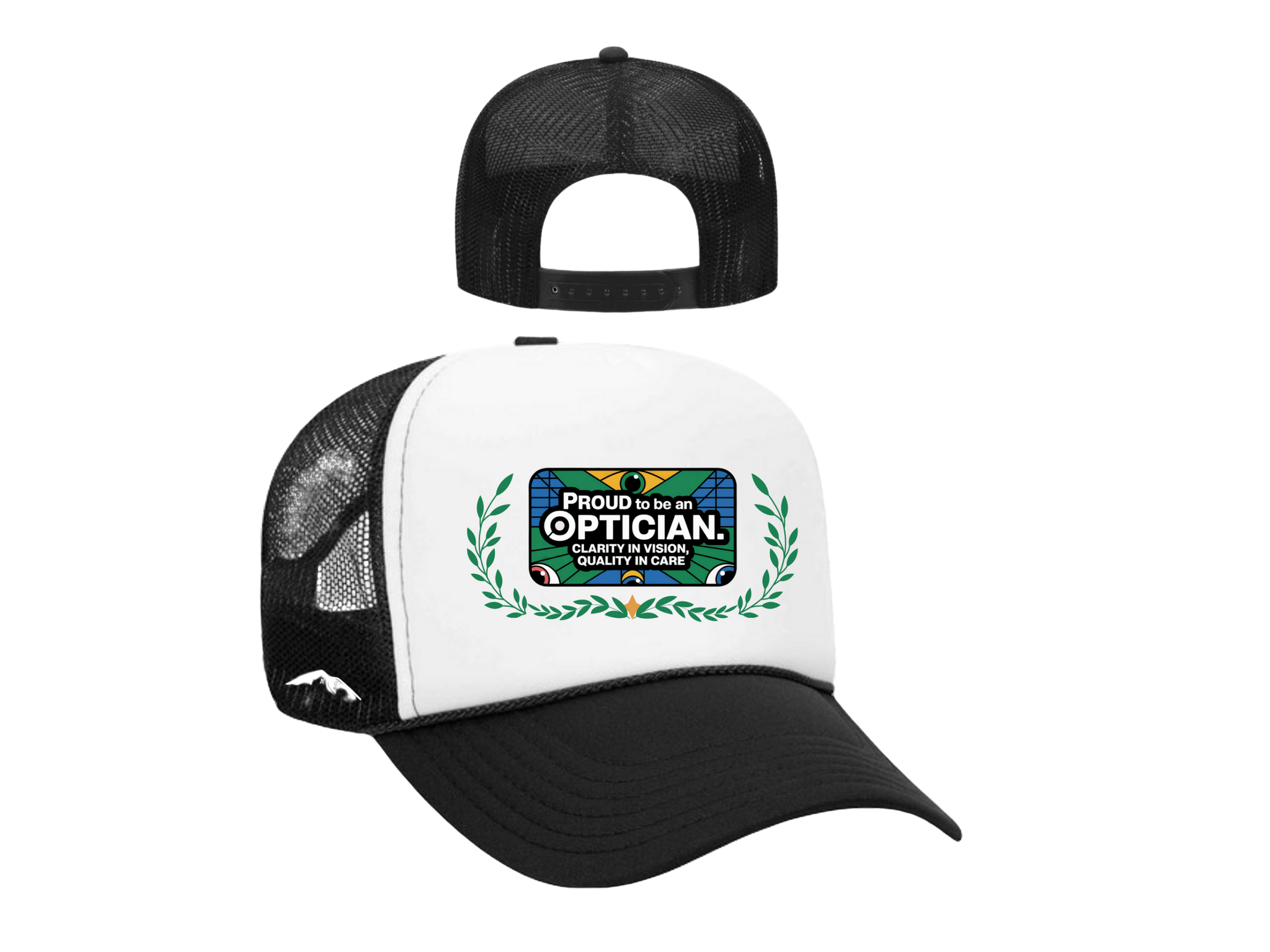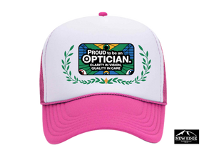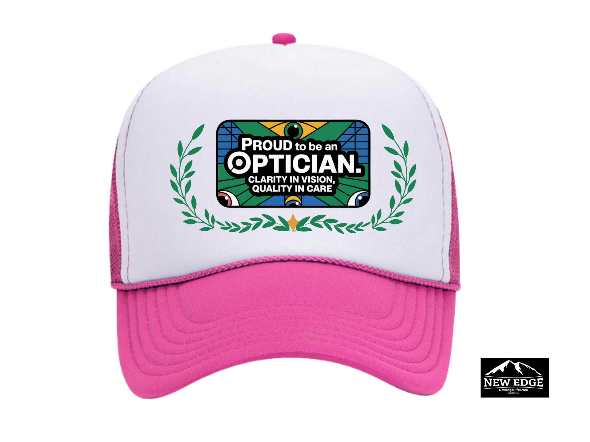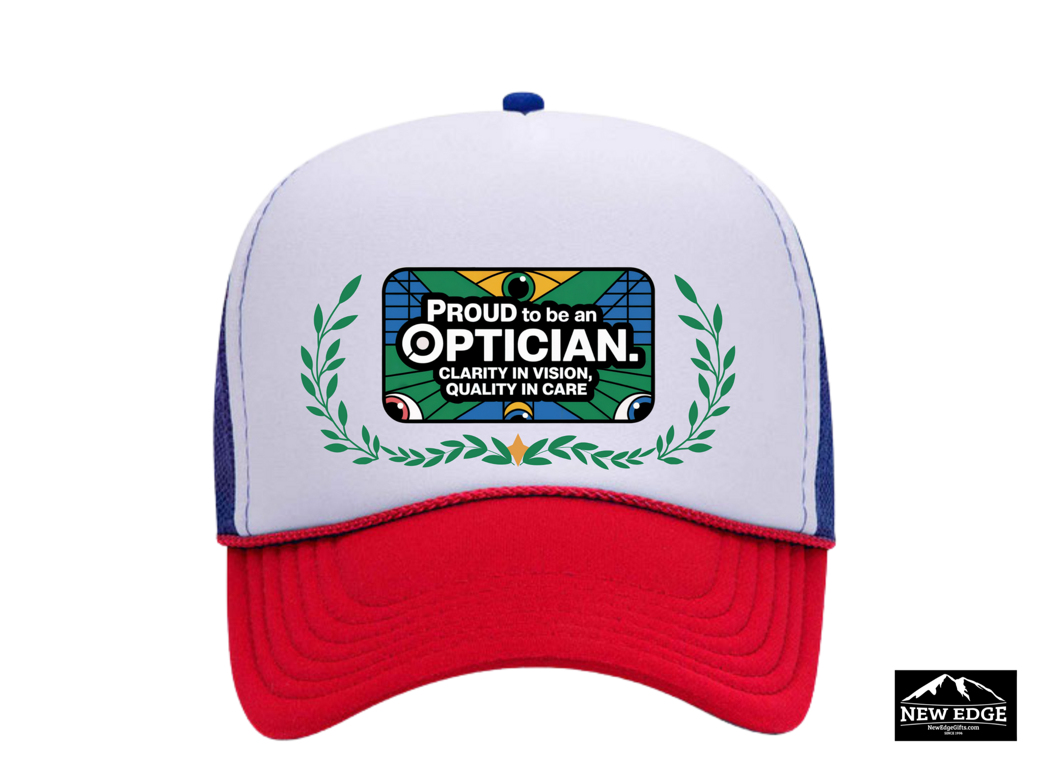 Optician Trucker Hat – Proud to Be an Optician | Clarity in Vision, Quality in Care | Eye Care Professional Gift
