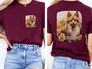 Pomeranian Sunflower T-Shirt – 'Bring Joy, Inspire Smiles' Front & Back Design – Fluffy Dog Lover Tee