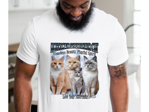 Show off your love for one of the most iconic cat breeds in true retro style with this Unisex American Shorthair Cat Bootleg Collage T-Shirt. Featuring a bold, vintage-inspired collage design, this tee captures the quirky charm and confident flair of the American Shorthair—making it the purr-fect choice for stylish cat lovers everywhere.