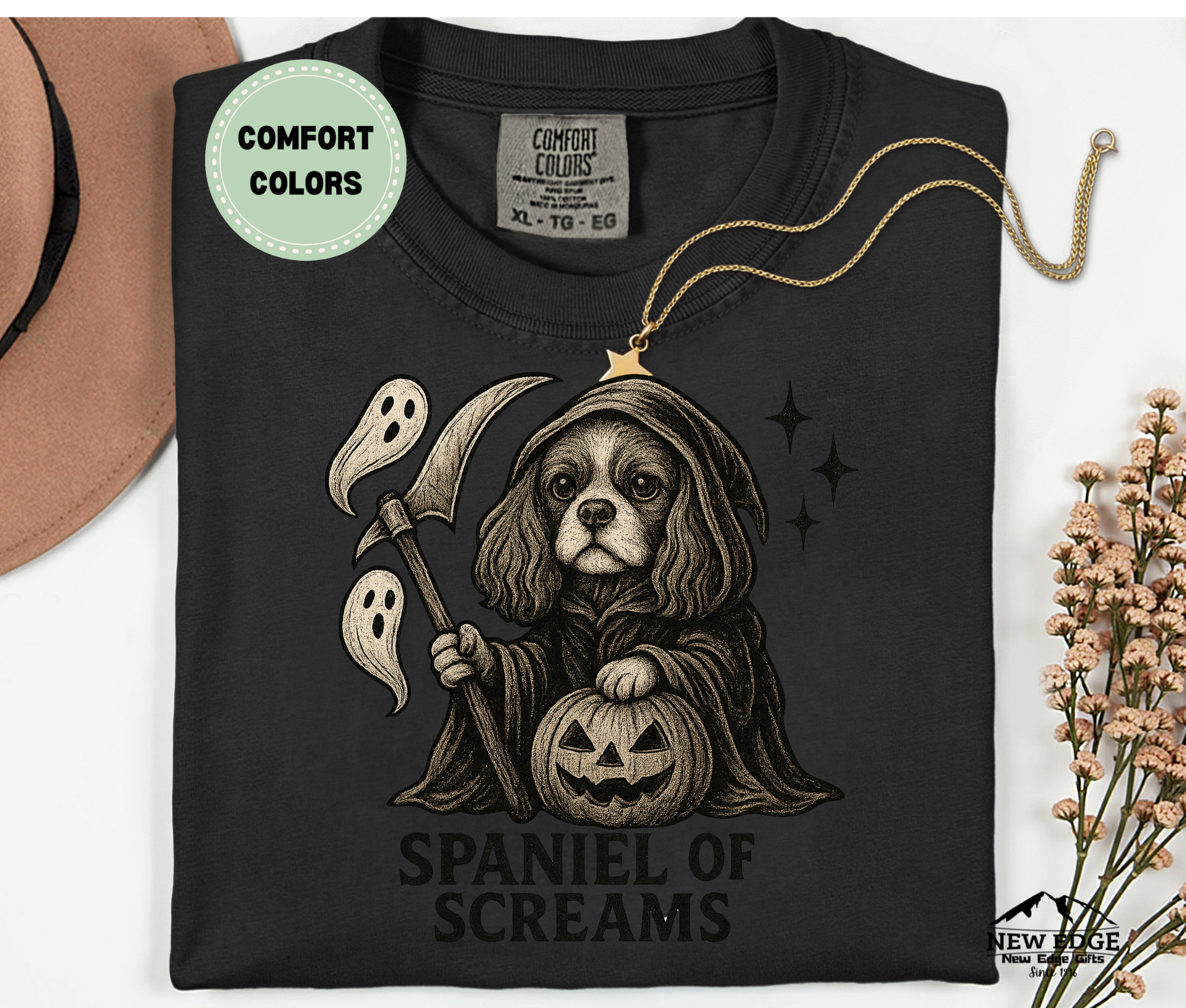 Printed on a premium Comfort Colors unisex tee, this shirt has a relaxed fit and vintage-washed softness that feels amazing to wear. The unique design blends humor and Halloween spirit, making it a must-have for Spaniel parents and anyone who loves pun-inspired holiday apparel.