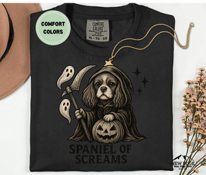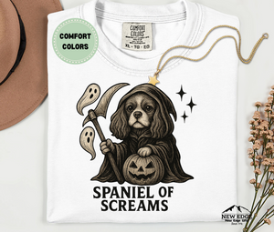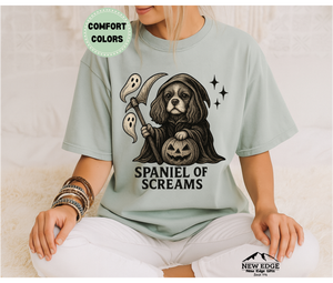 Add a spooky bark to your Halloween wardrobe with the Spaniel of Screams tee!
