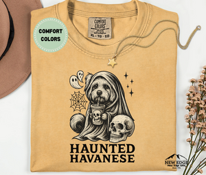Unisex Comfort Colors Haunting Havanese Halloween T-Shirt | Spooky Dog Pun Tee