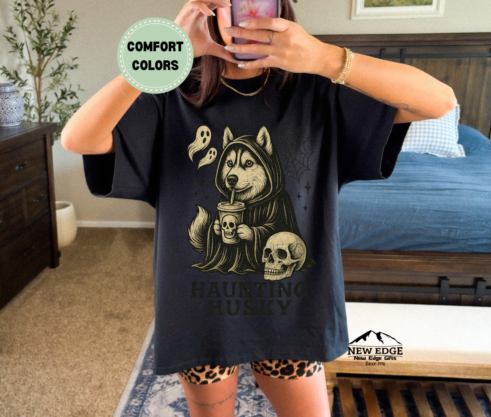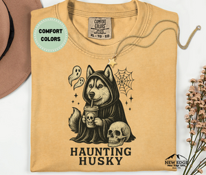 Spooky, funny, and full of Husky personality—the Haunting Husky tee is perfect for celebrating Halloween in style!