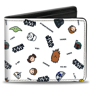 BI-FOLD WALLET - STAR WARS CHARACTER FACES AND NAMES SCATTERED WHITE BLACK